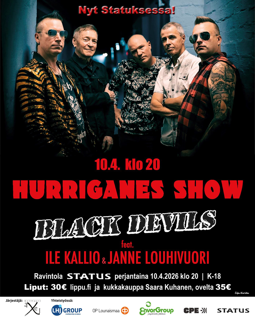 30-vuotista uraansa parhaillaan juhliva Black Devils on tehnyt viime vuodet yhteistyötä Ile Kallion ja Janne Louhivuoren kanssa. Kokoonpanon studioalbumit "Get Ready!" (2024) ja "Hooked" (2025) ovat keränneet ylisanoja sekä faneilta että kriitikoilta, ja nousseet albumilistojen kärkikahinoihin. Nimellään alkuperäisen Hurriganesin juuria kunnioittavan Black Devilsin peruskokoonpanoon kuuluu J-P Kakkola (laulu, rummut), Tero Salminen (basso) ja Matti Kähkönen (kitara).